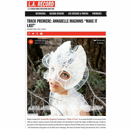 vocalist Annabelle Maginnis wears my designs - cover art on new release - photo: Fanny Chu