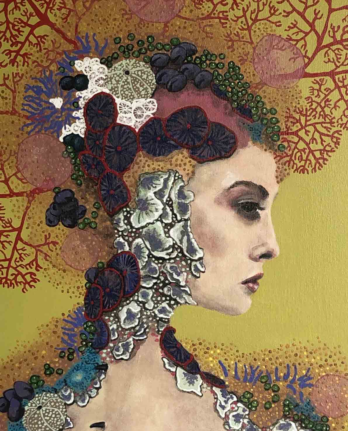 My life.e.quatic series is inspired by the natural aquatic environment and the creatures within. My interpretation of the complex structures, vivid colours and intricate patterning observed in a variety of marine creatures as well as a reference to mankinds influence over our environment. A meshing as well as a symbolic representation of how coral and surrounding ecosystems, once autonomous must now cling to us in the hopes of maintaining their continued existence....myself portraits HERE