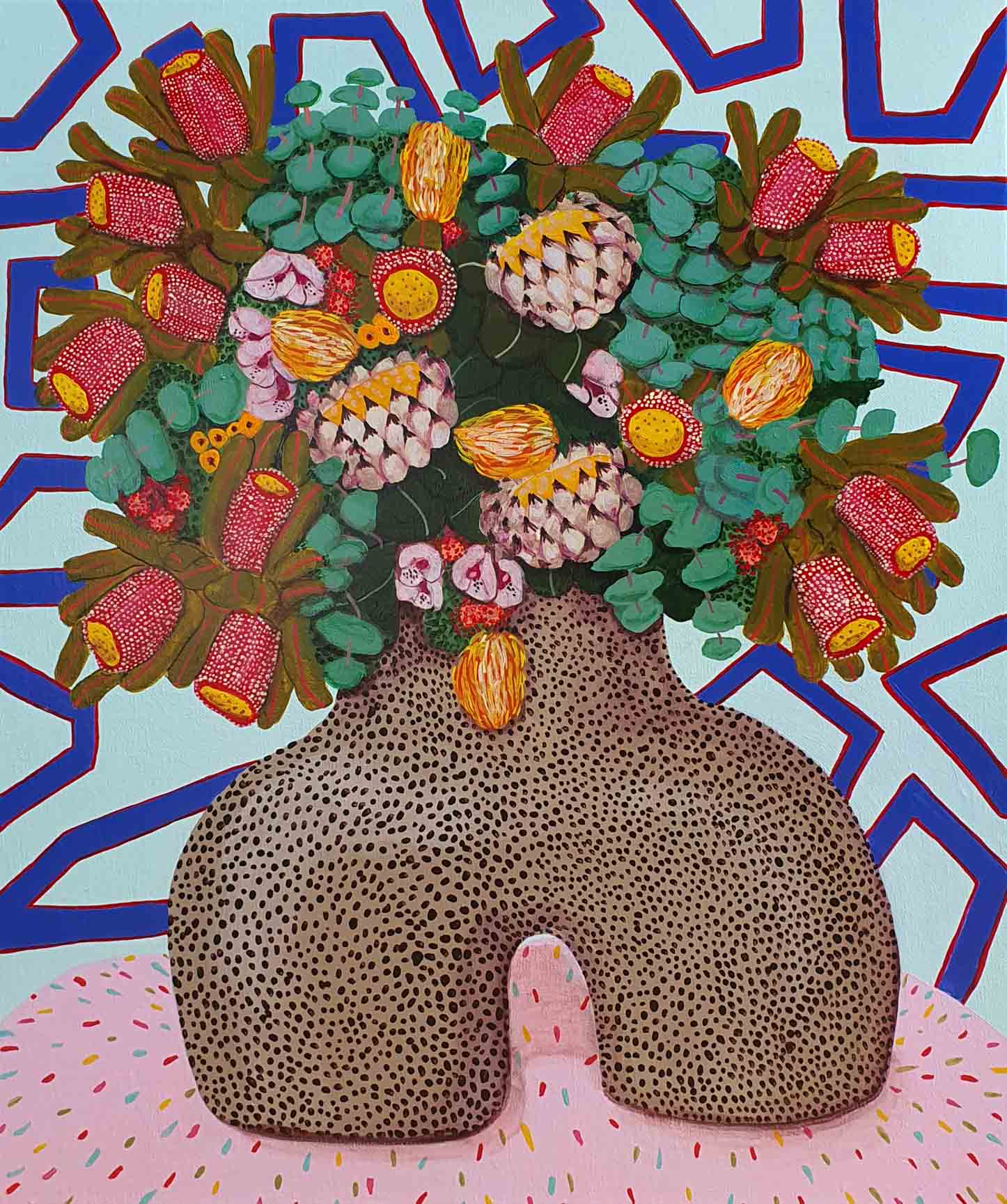 Protea Over Animal Print (sold)