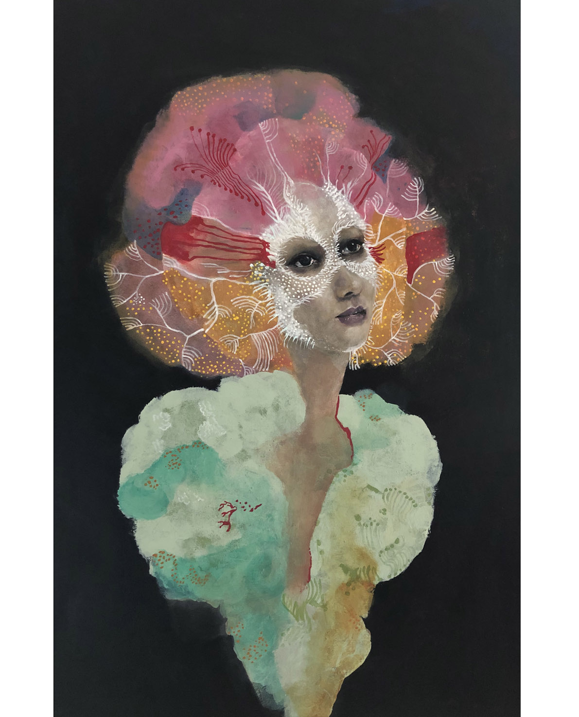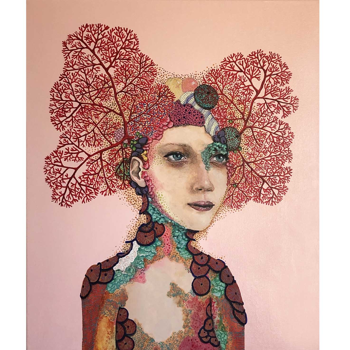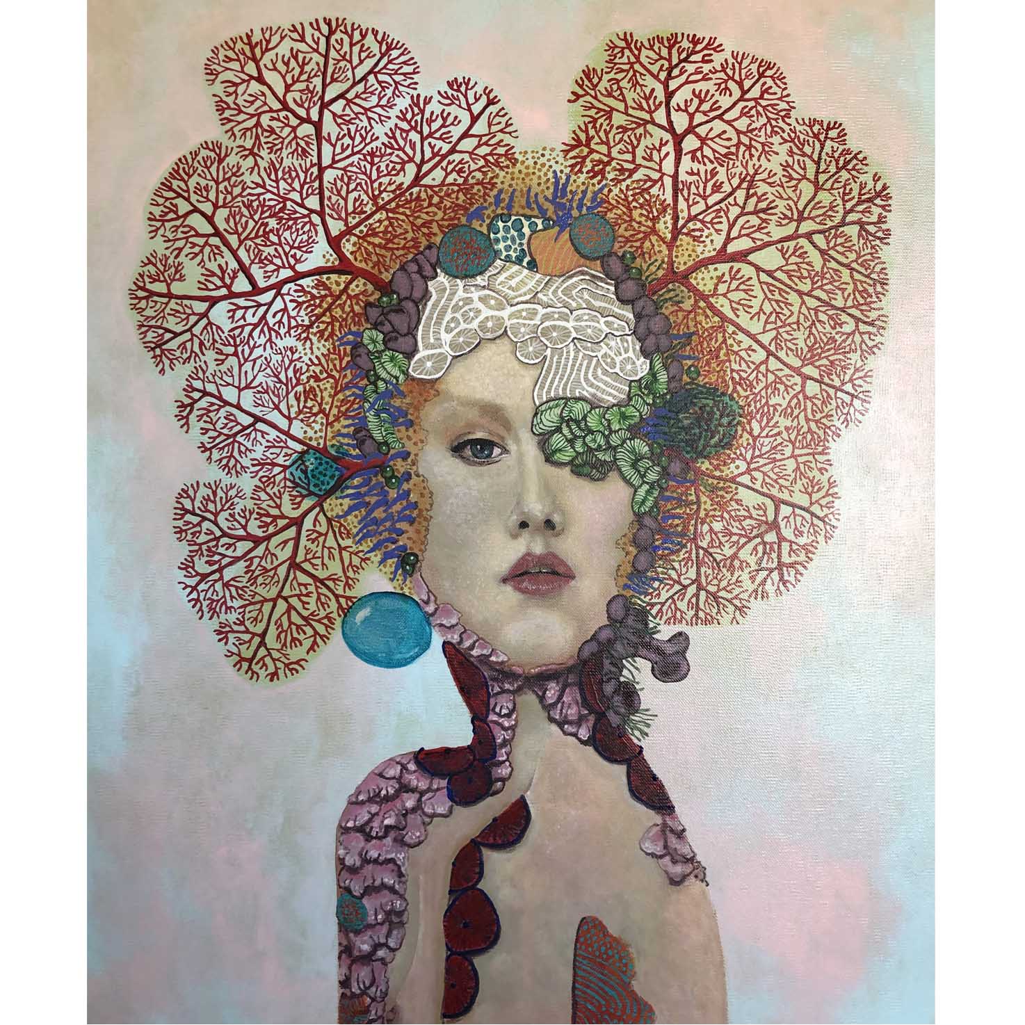 My life.e.quatic series is inspired by the natural aquatic environment and the creatures within. My interpretation of the complex structures, vivid colours and intricate patterning observed in a variety of marine creatures as well as a reference to mankinds influence over our environment. A meshing as well as a symbolic representation of how coral and surrounding ecosystems, once autonomous must now cling to us in the hopes of maintaining their continued existence....myself portraits HERE